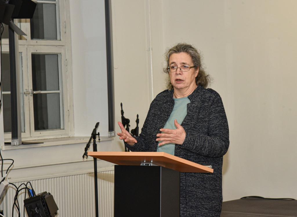 Nach einer musikalischen Pause übergab Konstantin Arkush das Wort an Frau Gunda Ulbricht vom HATiKVA, der Bildungs- und Begegnungsstätte für jüdische Geschichte und Kultur Sachsen e. V. Sie berichtete über die Arbeit ihren Verein mit Archivmaterialien über Juden und führte dabei einige Beispiele für Familiengeschichten an. Frau Ulbrichts Vortrag dauerte etwa 15 Minuten und wurde mit Applaus bedacht. Die Musiker spielten noch ein weiteres Stück, und damit war der offizielle Teil des Programms beendet.