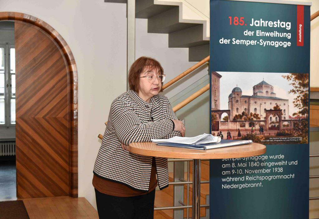 Nach einer weiteren musikalischen Pause übergab Konstantin Arkush das Wort an Frau Jelena Tanajewa von der Jüdischen Gemeinde Dresden. Ihr Vortrag über die Geschichte der Dresdner Gemeinde dauerte etwa 15 Minuten und wurde mit Applaus begrüßt.