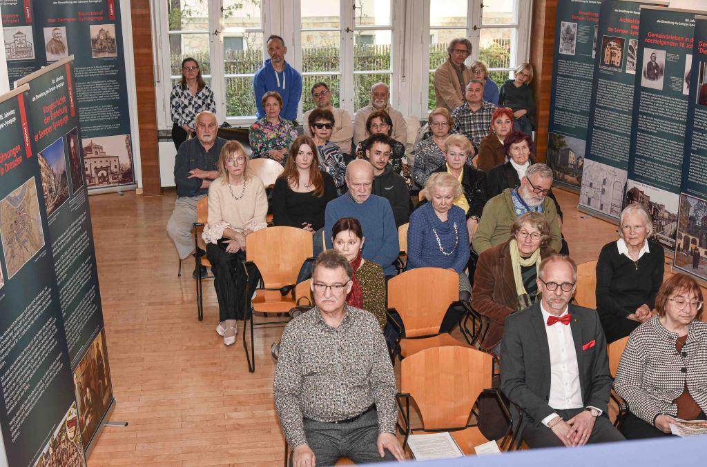 Am 16. April 2026 um 18:00 Uhr fand im Haus der Architekten Dresden die feierliche Eröffnung von zwei Ausstellungen im Rahmen des Landesprogramms "TACHELES 2026 – Jahr der jüdischen Kultur in Sachsen" statt. Das Haus der Architekten befindet sich in einer historischen Villa an der Goetheallee, auf zwei seiner Etagen kann man jetzt beide Ausstellungen sehen.
